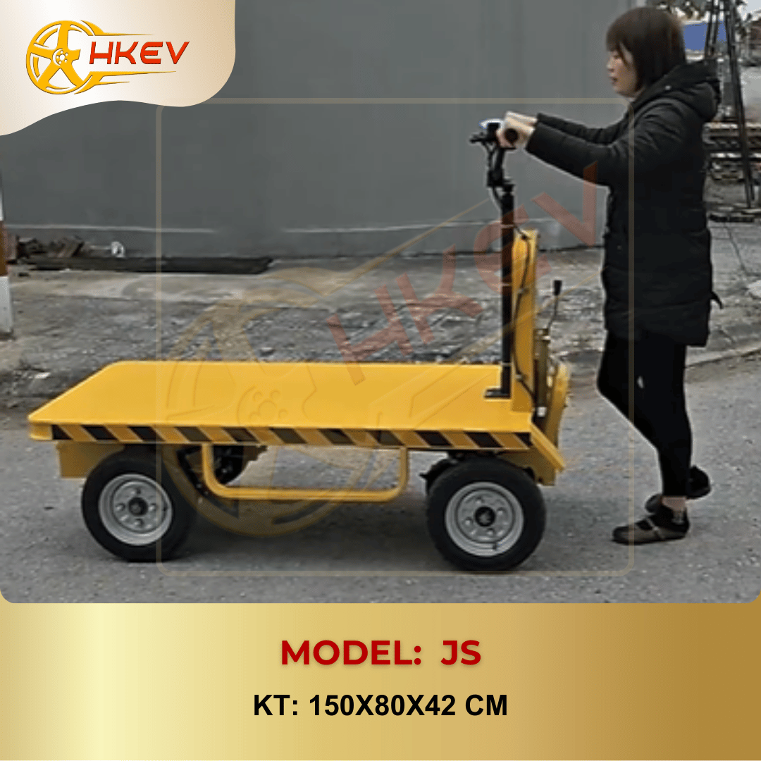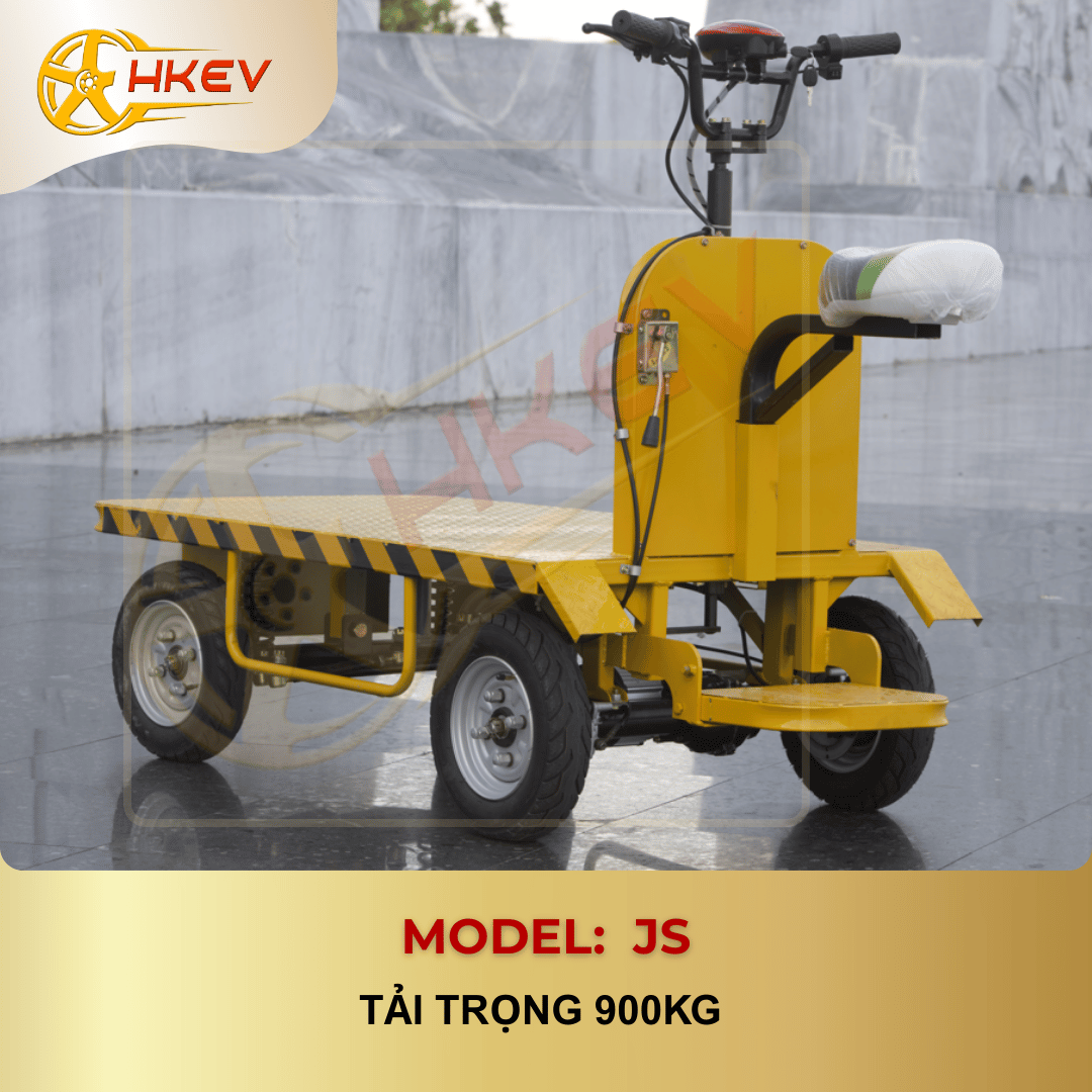 Xe điện đa dụng JS 900kg là dòng xe điện chở hàng đa dụng sàn phẳng được thiết kế cho nhu cầu vận chuyển nội bộ tải khá lớn nhưng vẫn giữ được sự gọn gàng và linh hoạt khi di chuyển. Với tải trọng 900kg, thùng xe rộng 150 × 80 cm, kết hợp động cơ 850W – 48V mạnh mẽ, xe có thể vận hành ổn định trong nhiều môi trường như nhà xưởng, kho hàng, khu công nghiệp, trang trại, nông trường hoặc công trường xây dựng. Đặc biệt, xe được trang bị lốp 300-8 bám đường tốt, giúp hoạt động hiệu quả trên đường bê tông, nền nhà xưởng, đường nội bộ và cả đường đất hoặc địa hình hơi gồ ghề.